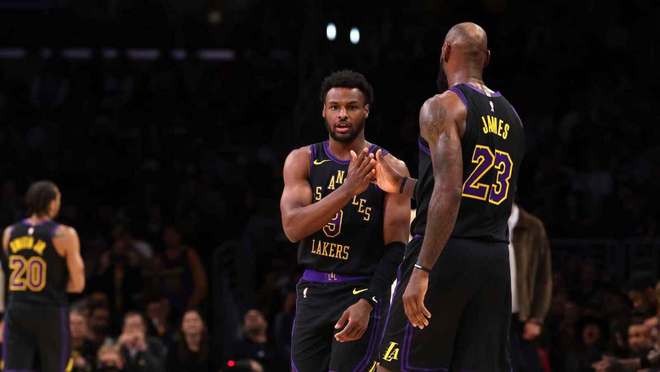 勒布朗·詹姆斯和布朗尼·詹姆斯父子间的默契配合在湖人队中持续闪耀