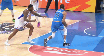 第二点就是抑制对方的快攻。我们从开局的进攻成功率,通过防守反击,通过成功率,给对方制造了很大的麻烦。所以我们的开局,包括打得比较合理,成功率也比较高,内外、远投、突破等等,打的是应该说从第一阶段到现在为数不多的几场高水平发挥。