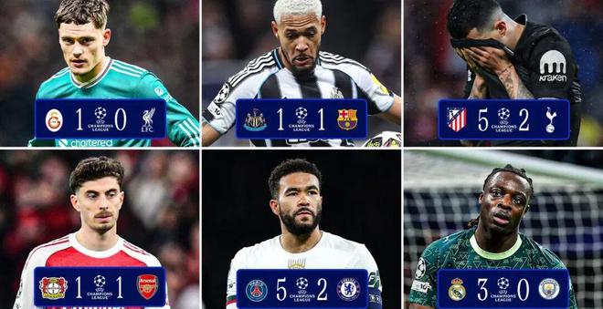 欧冠1/8决赛首回合英超球队全数不胜,上次还是2022/23赛季。当时利物浦、切尔西和热刺分别输给皇马、多特蒙德和米兰,曼城客场被RB莱比锡逼平。但次回合,切尔西、曼城均实现逆转,曼城一路连克拜仁、皇马和国米夺冠。不过,当时曼城首回合平局,切尔西仅1球小负。当年同样2比5惨败的利物浦最终出局,今年也是2比5的热刺和切尔西,以及净负3球的曼城,前景可想而知。